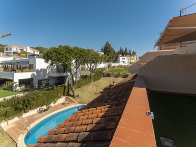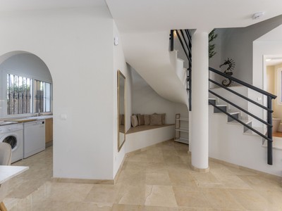 Casa en esquina con vistas al mar, rodeada del Golf de Cabopino y a solo 10 minutos andando de la playa y del puerto. Comunidad muy privada de solo 5 viviendas con piscina.